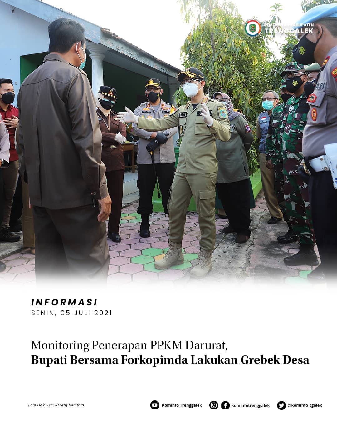Bupati Nur Arifin menegaskan kegiatan grebek desa ini akan terus dilakukan hingga ke 14 kecamatan, masuk ke desa-desa sehingga ada kesepahaman mulai dari pusat, daerah hingga ke tinggkat yang paling bawah dan PPKM Darurat bisa terlaksana dengan baik. Diskominfo Trenggalek